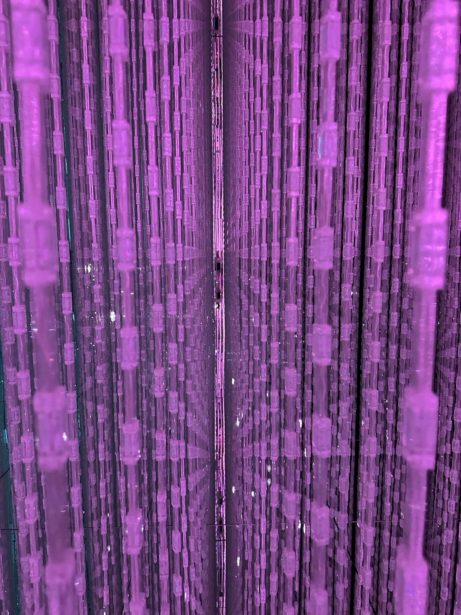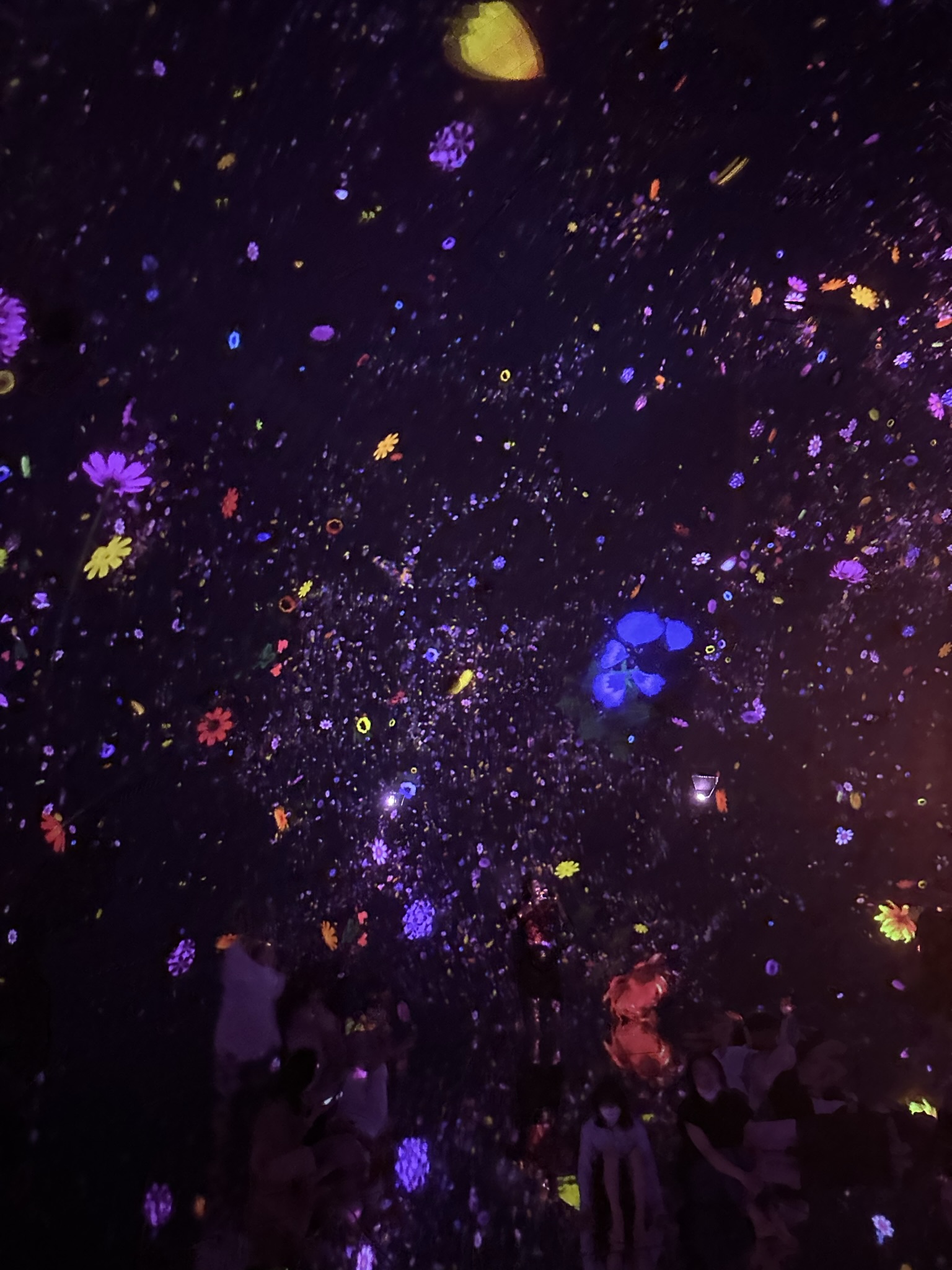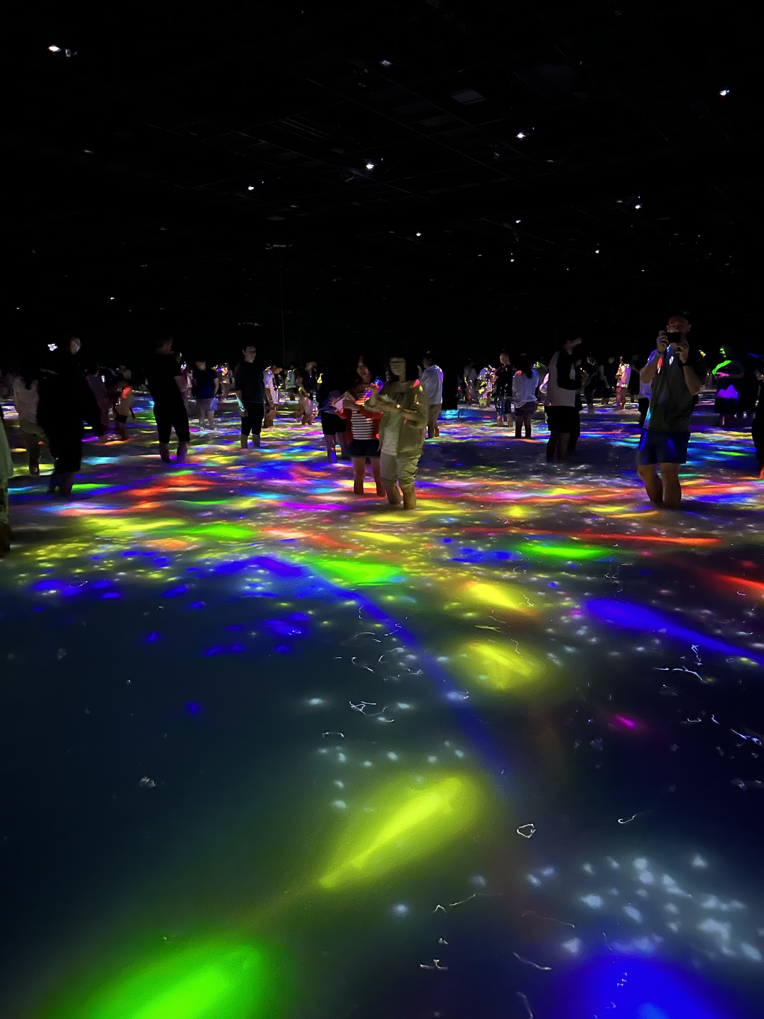 This is a beautiful exhibit where you step into a indoor pool of water where the surface of the water is illluminated by dazzling colors, flowers, and fish that scatter and interact with their surroundings. The flowers that blom will change along with the seasons. It’s a feast for the eyes and such a beautiful experience.